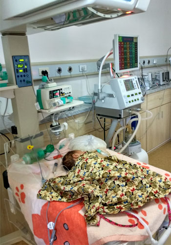 患兒李某葉子,系第4胎第3產(chǎn),孕41+1周,因“臍帶繞頸1周宮縮乏力、羊水胎糞污染”行剖宮產(chǎn)娩出,出生體重4.1kg,臍帶繞頸1周,羊水Ⅲ度混濁?;純荷蠹闯霈F(xiàn)肌張力差,伴有氣促,時(shí)有呻吟,即轉(zhuǎn)入兒科NICU,頭罩吸氧下仍氣促加劇,血氧飽和度<85%,心率達(dá)170-180次/分,急查胸片提示兩肺野散在小點(diǎn)片狀影,血?dú)夥治鎏崾劲蛐秃粑ソ?,診斷“新生兒胎糞吸入綜合征”。病情危重,遂予氣管插管、連接美囯紐邦呼吸機(jī)進(jìn)行有創(chuàng)機(jī)械通氣。經(jīng)過兒科戴朝暉主任、莊姞副主任醫(yī)師及全體醫(yī)護(hù)人員的精心治療,NICU醫(yī)護(hù)人員的全天候監(jiān)護(hù),機(jī)械通氣4天,順利撤機(jī),逐漸降低吸入氧濃度,患兒病情漸恢復(fù),母乳喂養(yǎng),吸吮有力,活力好,住院2周出院。