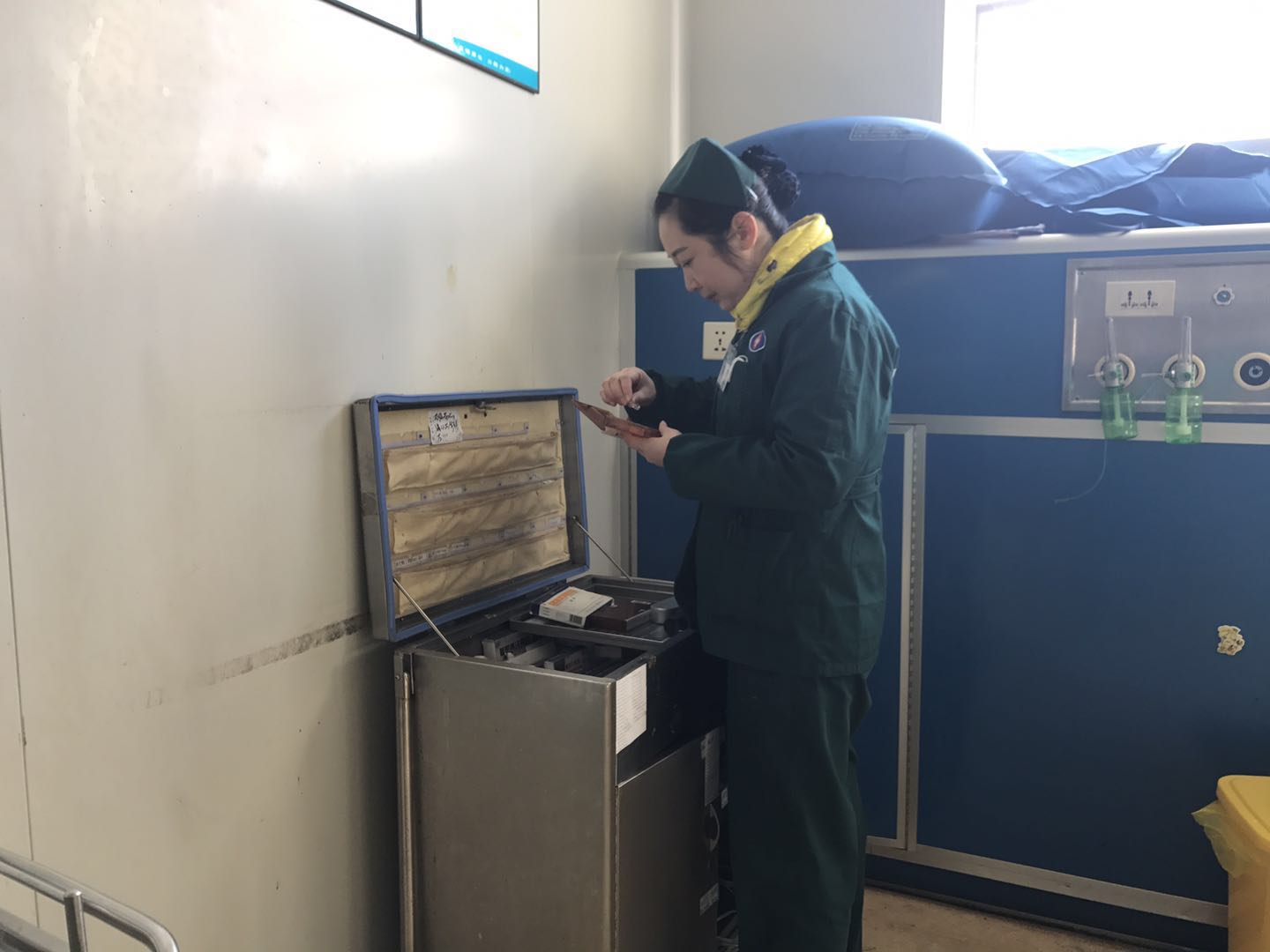 夜間同時(shí)有幾個(gè)病人需要拍片,CT檢查,她能合理的安排,讓大家都沒有意見。這邊一位危重的病人先CT檢查,安置好體位。去安撫哭泣的小娃娃,在這等待的二分鐘內(nèi)用一張面巾紙適時(shí)地安慰了焦急的媽媽和哭泣的小娃娃,配合拍片。第三安排骨折病人做CT檢查。第四位病人,木工,手背切割傷,傷口已包扎,讓其稍等,木工說:可以,那我去抽支煙吧。她說:可以,我們這有吸煙區(qū),吸根煙緩解了他的緊張和疼痛,抽完回來拍片,時(shí)間剛好。